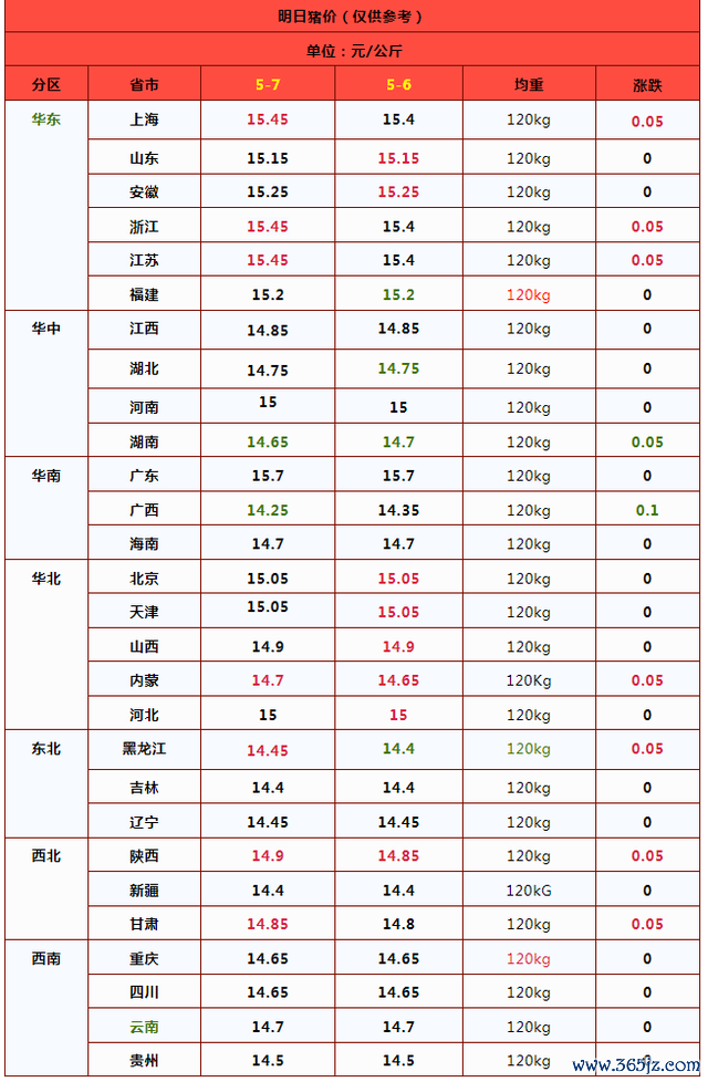 据数据显示,受屠宰场调价收猪,预计,5月7日,外三元标猪出栏均价在14.81元/公斤,后市关注集团猪企出栏以及二育情绪的变化!