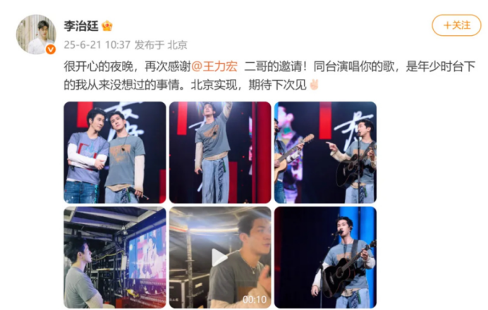 李治廷在微博上回应感谢二哥,实现了他不敢想的梦想。