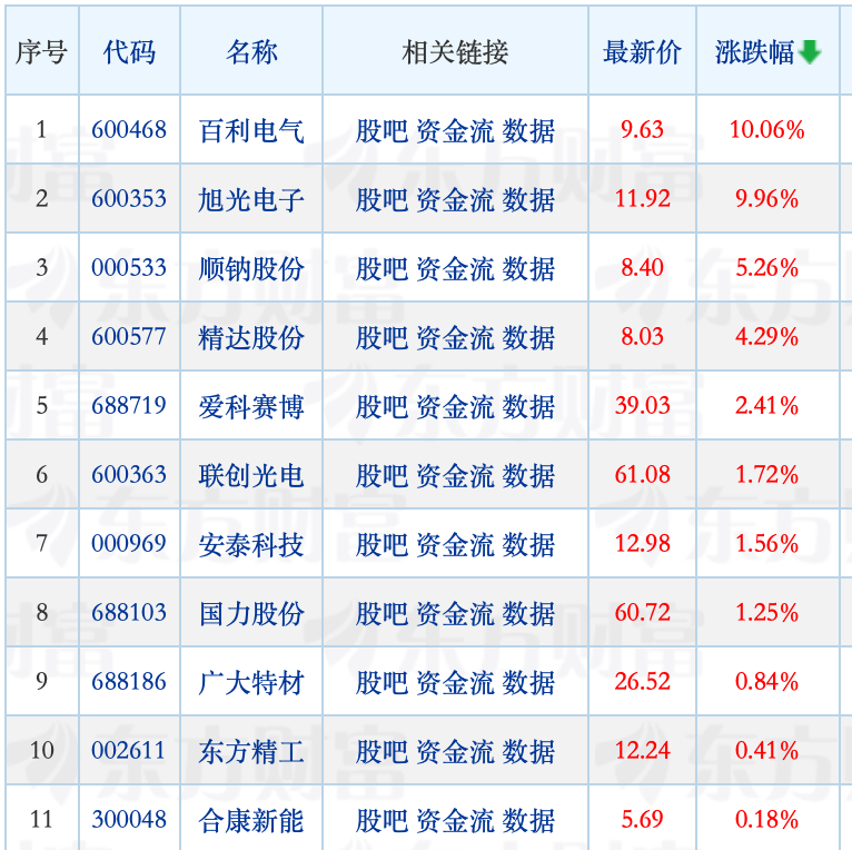 最近11个交易日,百利电气收获7个涨停板,股价从5月26日开盘的5.31元/股涨至6月10日的9.63元/股,涨幅超过80%。此外,近5日来,顺钠股份、爱科赛博等多只个股涨超20%。