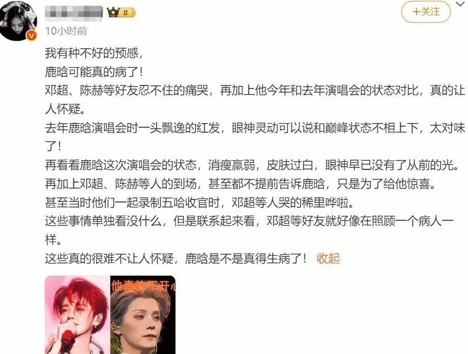 鹿晗的状态,加上邓超和关晓彤的反常行为,网友们不得不怀疑鹿晗是真的患病了。当然,一切也是网友猜测,或许也是过度解读。