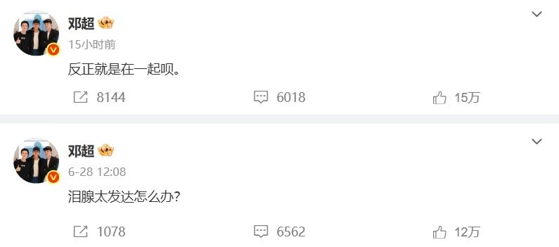 在综艺里面,邓超是唱到“没剩多少时间”才痛哭的,这让网友都怀疑鹿晗生病了,而这两天邓超更是连发了好几条和鹿晗有关的动态。